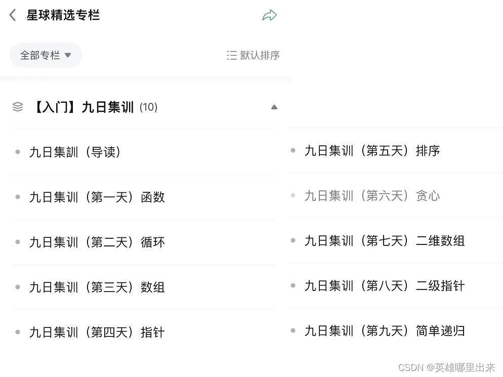 九日集训主要包含:函数、循环、数组、指针、排序、贪心、二维数组、二级指针、递归 这九项基础内容的专项学习和习题训练。