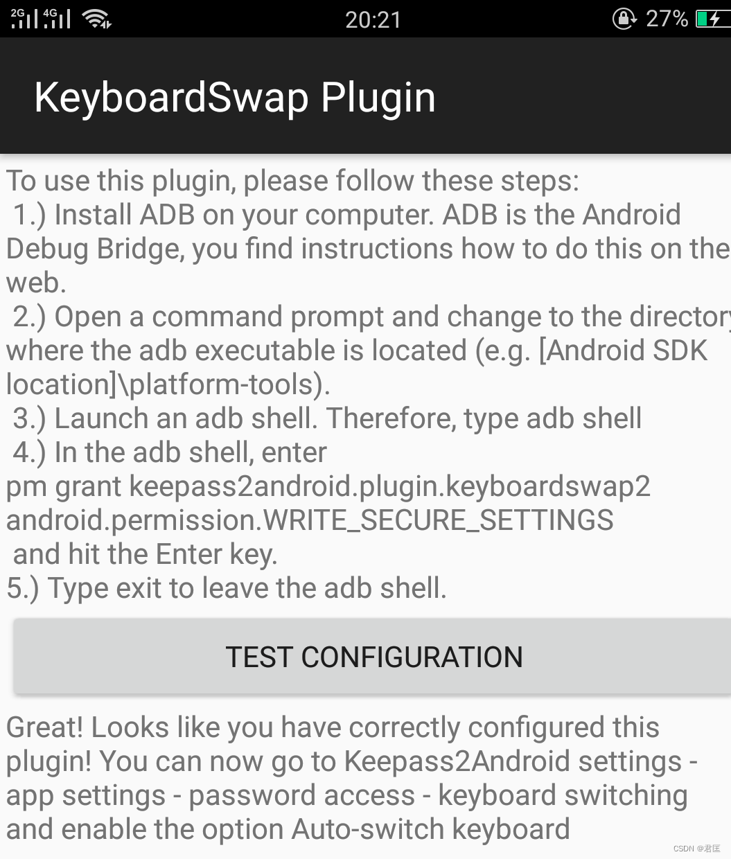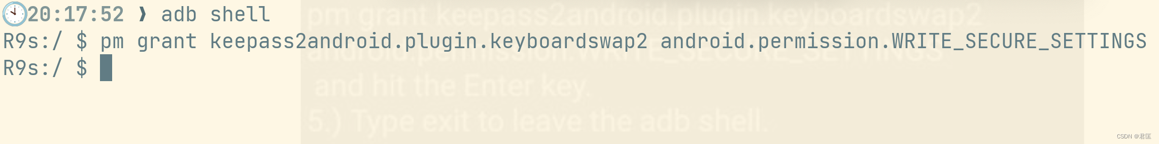 adb shellpm grant keepass2android.plugin.keyboardswap2 android.permission.WRITE_SECURE_SETTINGS