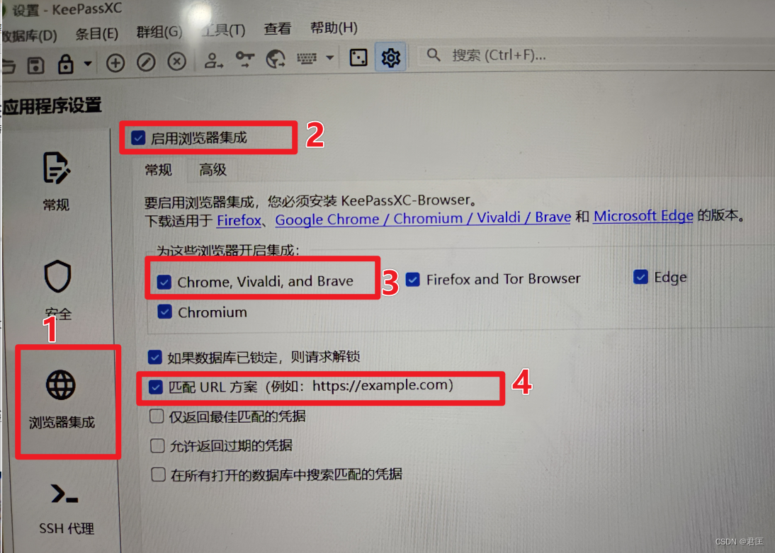 而如果你正在用keepassXC,那么你不用安装任何所谓的软件插件,直接在浏览器上安装相应的扩展程序,以及在keepassXC软件上做出浏览器集成配置,就可以使用自动填充功能了。————————————————版权声明:本文为CSDN博主「键盘即钢琴」的原创文章,遵循CC 4.0 BY-SA版权协议,转载请附上原文出处链接及本声明。