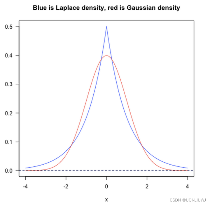 • f(x|\mu,b)=\frac{1}{2b}exp(-\frac{|x-\mu|}{b})