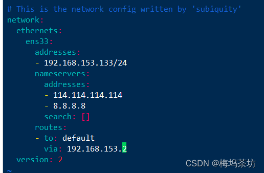 vim /etc/netplan/00-installer-config.yaml