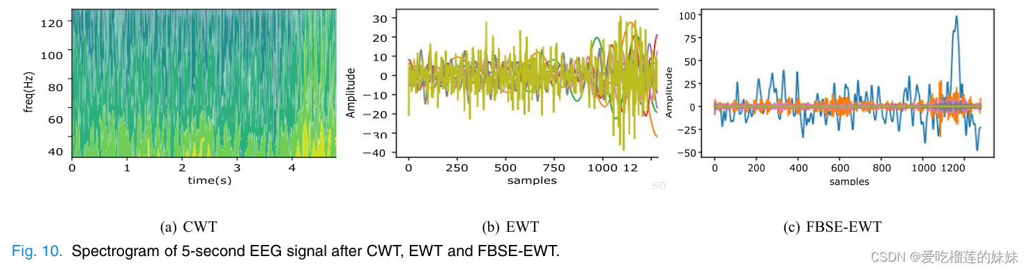 我们首先使用CWT、EWT和FBSE-EWT分别转换EEG信号(见图10),