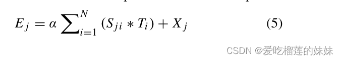 S代表了第i个位置对第j个位置的影响,两个位置的特征表示越相似,它们之间的相关性就越大。同时,将X馈送给卷积层,并将其重塑为RC×N,将生成一个新的特征T∈RC×H×W表示。然后我们执行T和S的矩阵乘法,然后将结果重塑为RC×H×W。最后,我们将其乘以一个缩放参数α,并与X进行逐元素求和运算,得到最终结果E∈RC×H×W[33](如公式5所示),