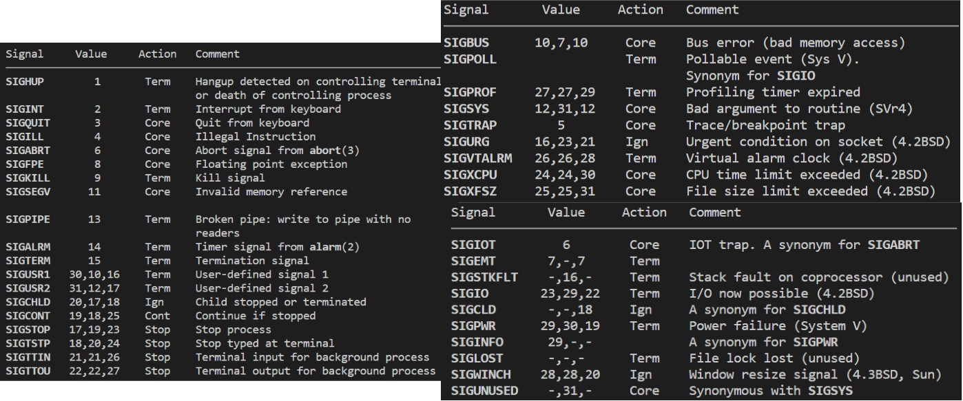 man 7 signal查看信号详细信息的命令