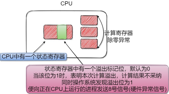 硬件异常指非人为调用系统接口等行为,因软件问题造成的硬件发生异常。操作系统通过获知对应硬件的状态,即可向对应进程发送指定信号。