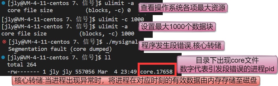 核心转储:当进程出现异常时,将进程在对应时刻的有效数据由内存存储至磁盘。