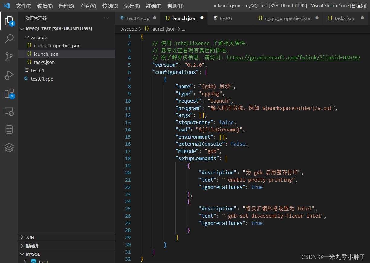 launch.json为调试器相关的配置文件。比如,调试器的路径、编译生成的可执行文件路径。