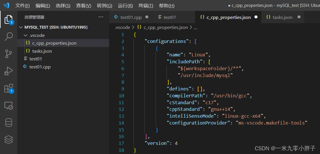 c_cpp_properties.json为编译器路径(包含目录、库目录)和智能代码提示相关的配置文件。