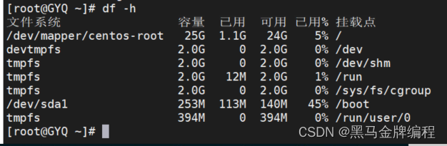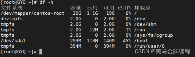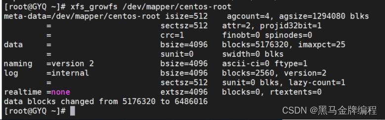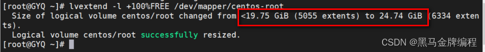 此时看到扩展了根目录容量,但是使用df -h 发现根目录没有变化