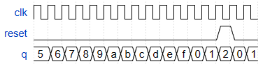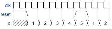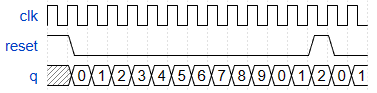 module top_module (input clk,input reset, // Synchronous active-high resetoutput [3:0] q);always@(posedge clk) beginif(reset)q<=0;elseq<=q+1;end