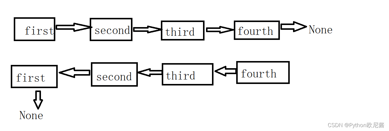 要想实现链表的转置,我们只需要把指针域指向的区域反过来就行了,如图所示: