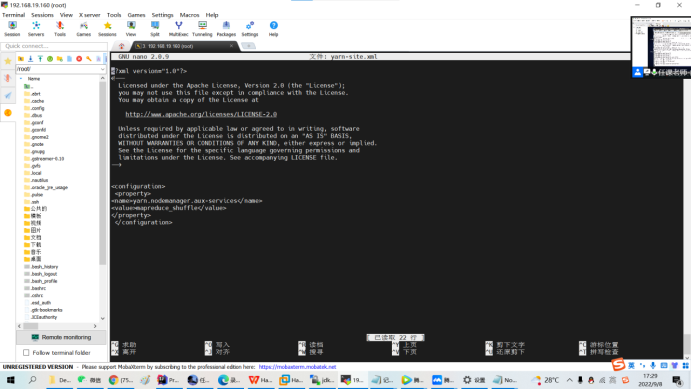 (4)配置yarn-site.xml 文件内容,在对应文件下面配置以下内容: