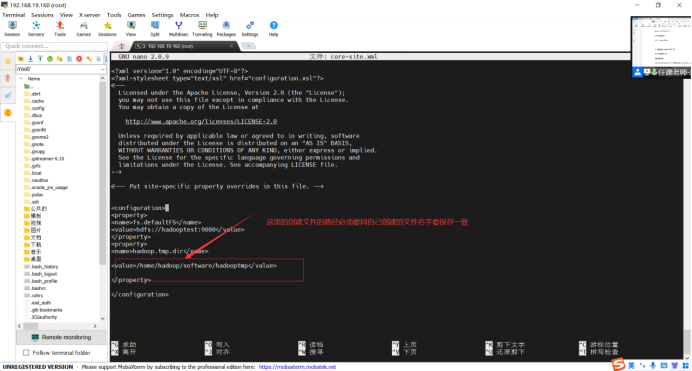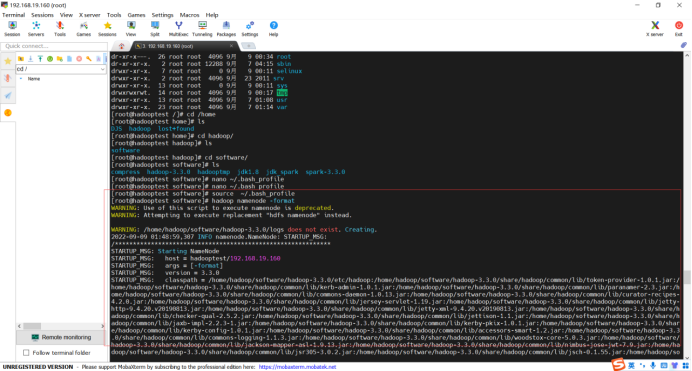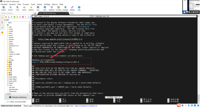 将JavaJDK传到虚拟机的/home/hadoop/software/目录下面(这里用的是MobaXterm软件可以直接拖拉传文件,不要用WinSCP软件传Windows的文件到虚拟机上面)
