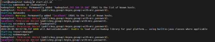 2.解决了上面的问题过后,于是有出现了下面的问题,我还也为是我自己的其他文件出现了问题,于是我把报错出去百度一下,发现,这台虚拟机是我重新配置的,并没有配置免秘钥,导致我的权限不够,于是我重新配置了一次免秘钥。