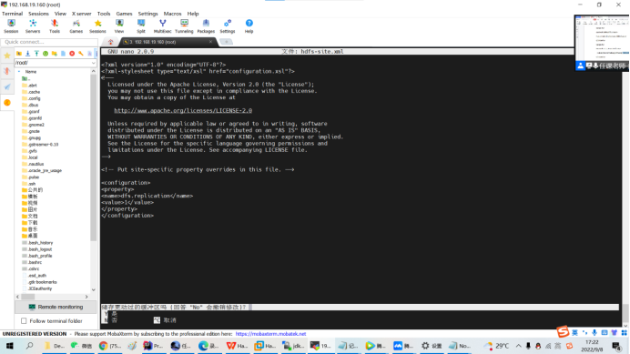 (2)配置hdfs-site.xml 的文件内容 ,在文档里面添加以下内容