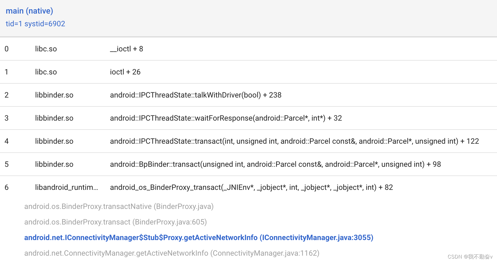 这类问题和 7一样,都是binder 调用,我们采用的措施是建立缓存,减少调用次数。网络状态我们可以在应用层面缓存和监听更新网络变化的,不需要每次使用时候 binder 调用查询系统服务。一些业务逻辑如果考虑不周会频繁调用查询网络状态。