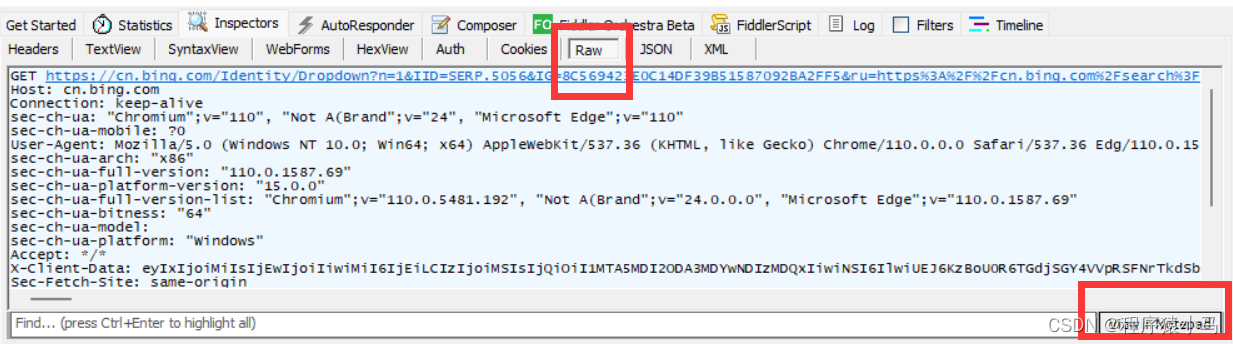 http 请求是有一定格式的,fiddler 会按照格式解析,呈现出不同的显示效果, 选择Raw查看最初的效果.