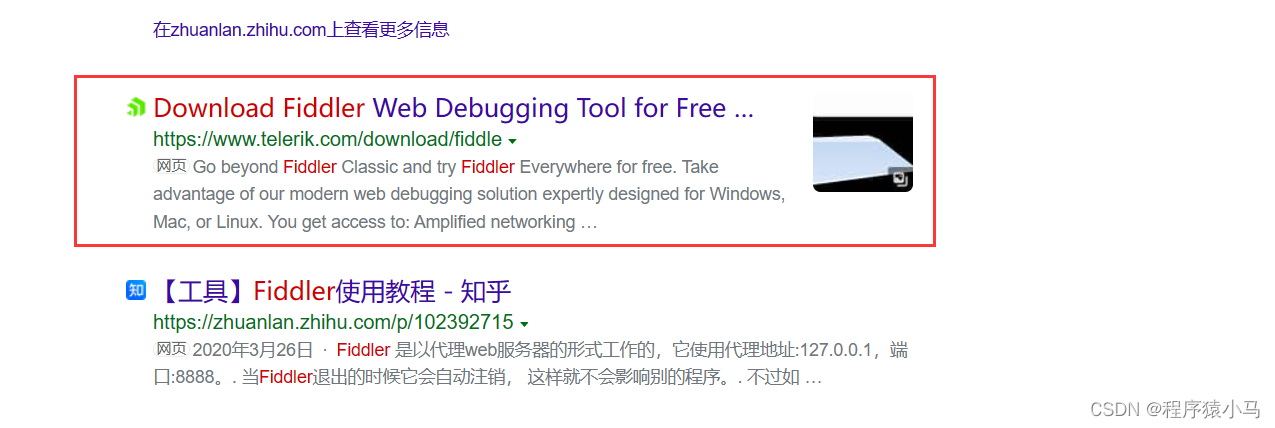 在浏览器中直接搜索Fiddler,然后选择如图: