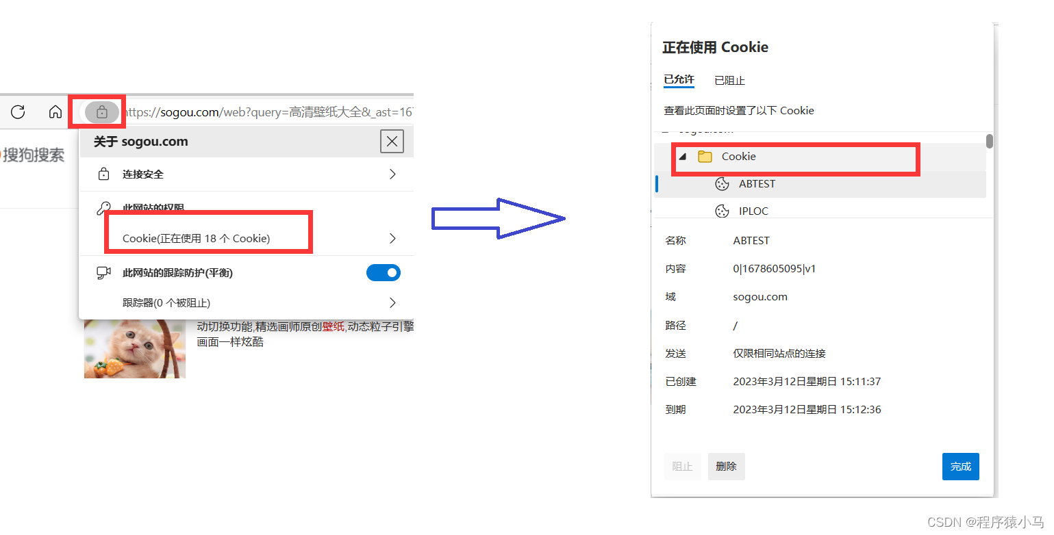 服务器会通过HTTP响应的报头部分(Set-Cookie 字段),将返回的数据放到Cookie里面.