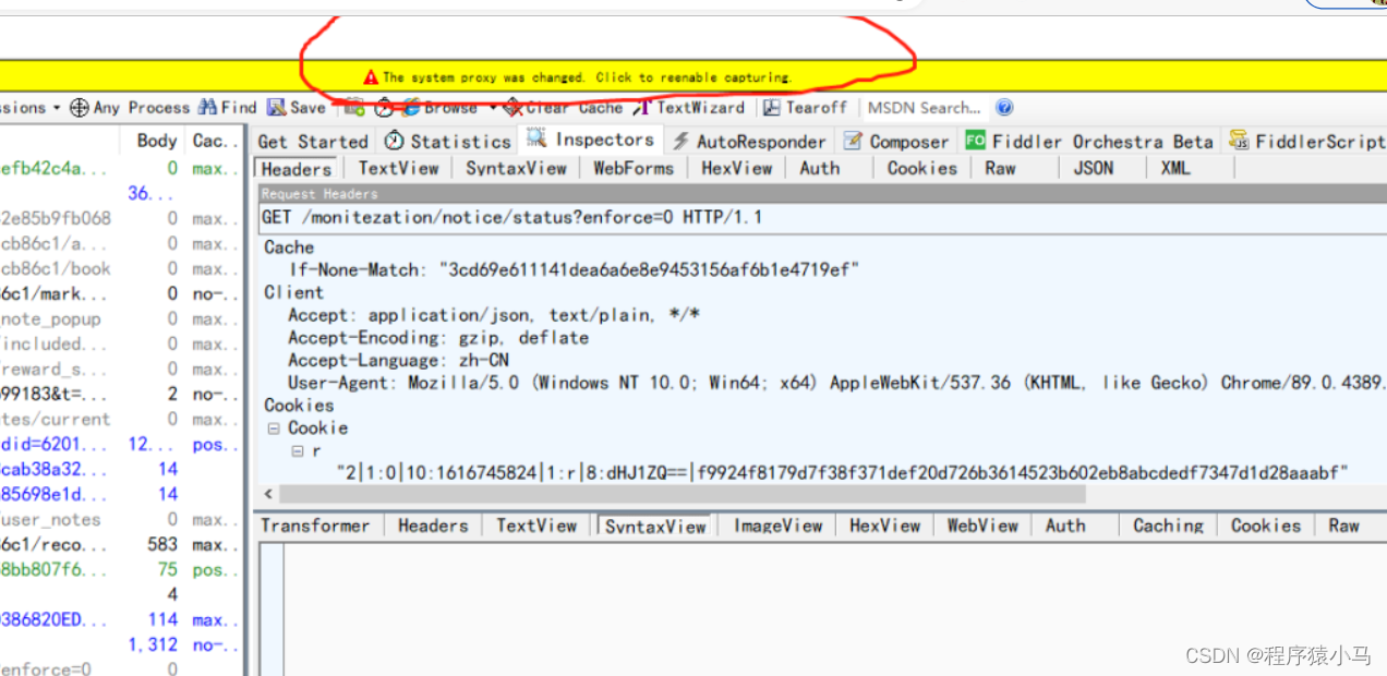 Fiddler 本质上是一个代理程序,使用的时候有两个注意事项: