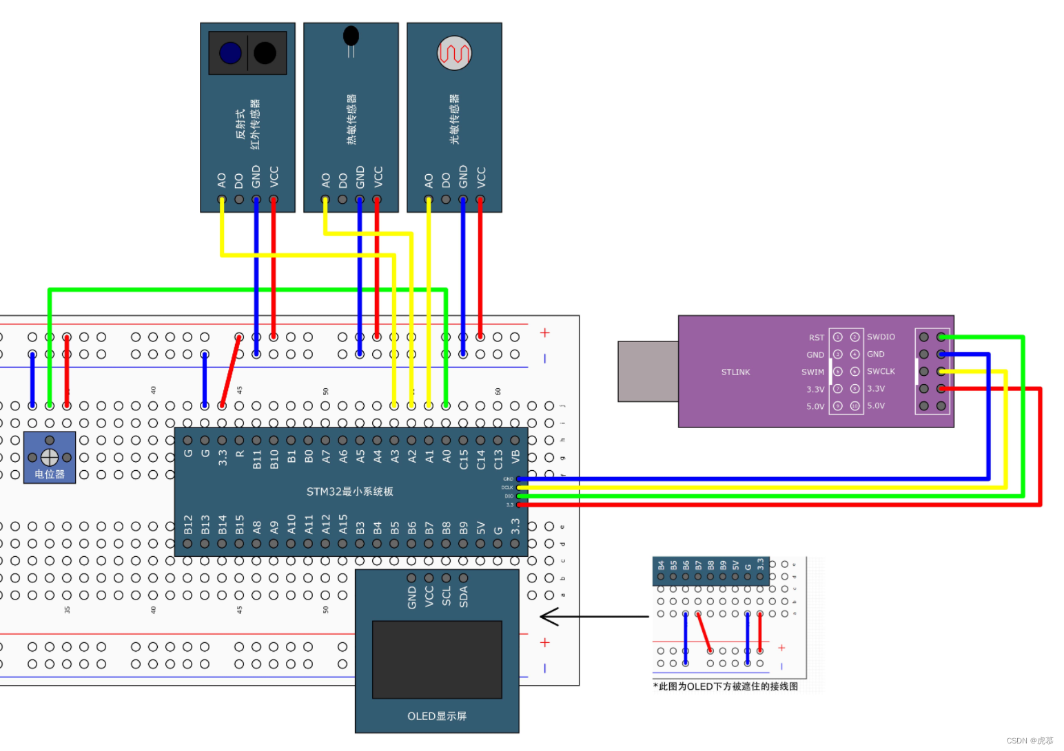 - 电位器产生可调电压:注意阻值不要太小(最少为kΩ级),以防烧毁电位器。