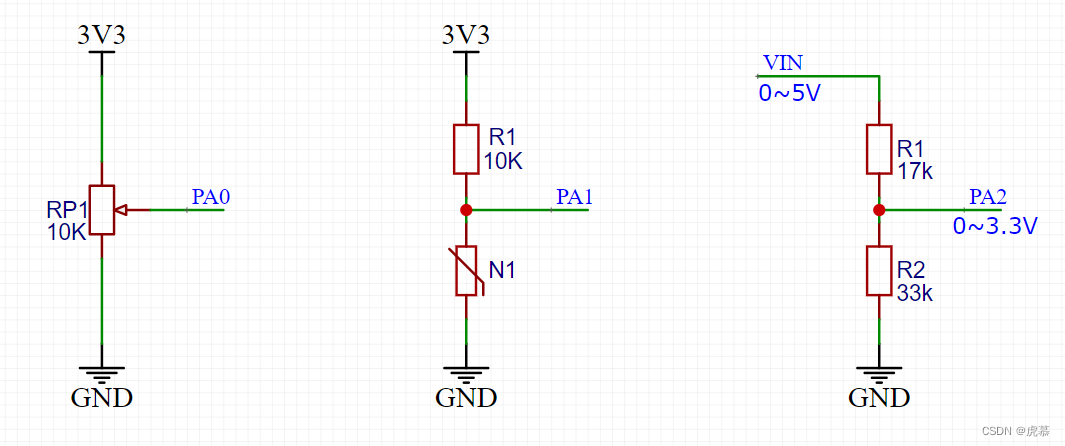 - 输入电压范围:0~3.3V,转换结果范围:0~4095。