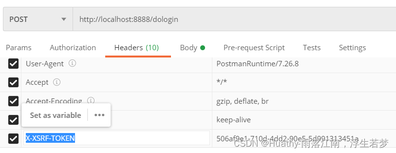 - 也可以在参数中携带令牌key:"_csrf" value:"xxx"