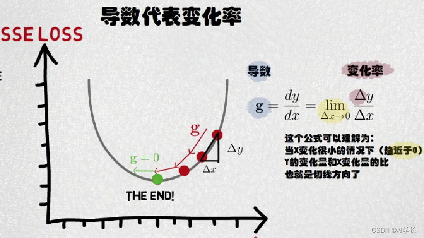 其中 是学习率,控制更新步长,训练人为设定0-1的值;负号表示梯度的反方向,变化率表示梯度的模。