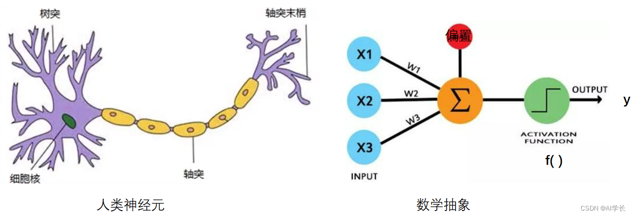 人工神经元是从人类神经元中抽象出来的数学模型。如下图: