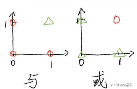 其实M-P模型人为的设定好w和b参数,就可以解决简单的线性分类问题(与门、或门)。