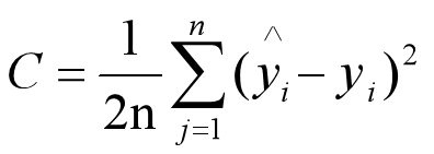 其中,n是个数,yi是当前值(真实),^yi是期望值(标签、预测); 1/2没有特殊意义,是为了求导后能约掉2系数。