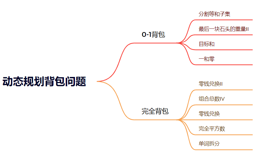bool canPartition(int* nums, int numsSize){//首先数组元素求和的sum,若sum%2==1,返回false//若sum%2==0,定义m=sum/2,n=numsSize//则问题变成了能否装满容量为m的背包//进一步变成了求装满容量为m的背包得到的最大价值量(本题价值量即为重量)//1.dp[j]表示装满容量为j的背包能获得的最大价值量//2.递推式:dp[j]=fmax(dp[j],dp[j-nums[i]]+nums[i]);//3.dp数组初始化:dp[i]=0;//4.遍历顺序:0-1背包顺序(滚动数组)int sum=0;for(int i=0;i=nums[i];j--)dp[j]=fmax(dp[j],dp[j-nums[i]]+nums[i]);}if(dp[m]==m) return true;else return false;