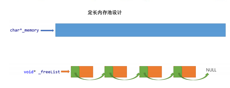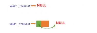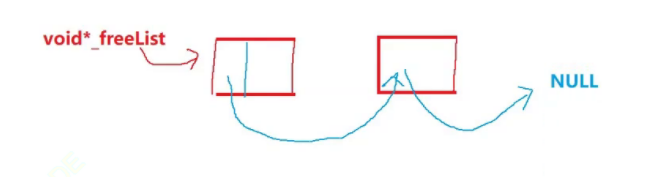 void* _freeList = nullptr; //链接还回来的内存块