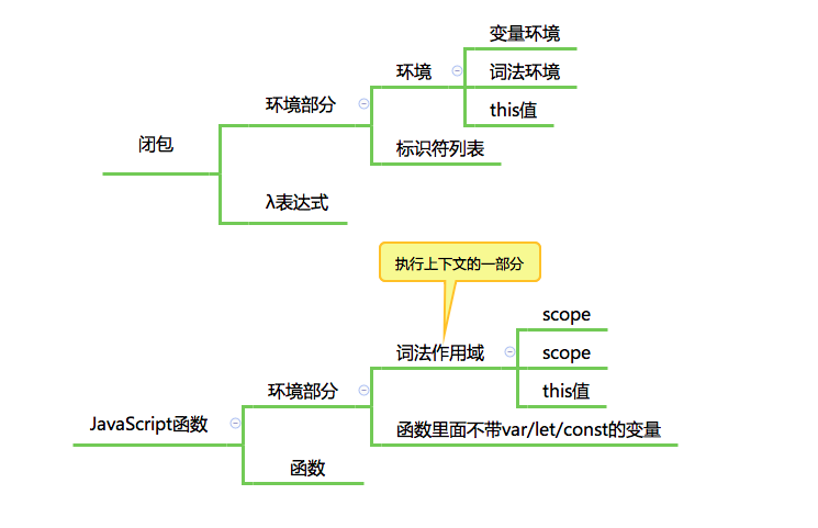 闭包其实只是一个绑定了执行环境的函数,这个函数并不是印在书本里的一条简单的表达式,闭包与普通函数的区别是,它携带了执行的环境,就像人在外星中需要自带吸氧的装备一样,这个函数也带有在程序中生存的环境