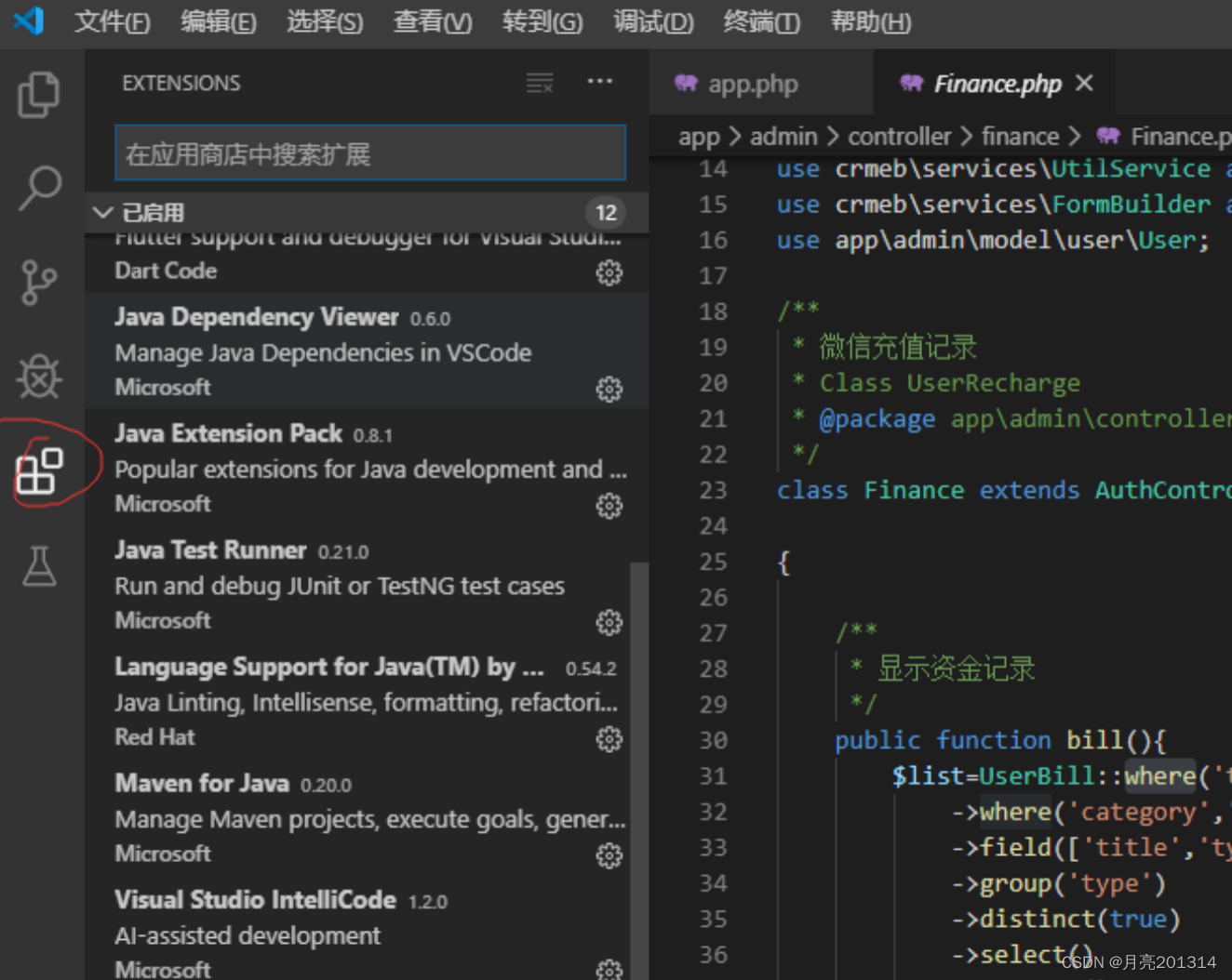 在vscode中我们想要跳到函数定义的地方去,要装个插件,点击下面红色圈住的地方