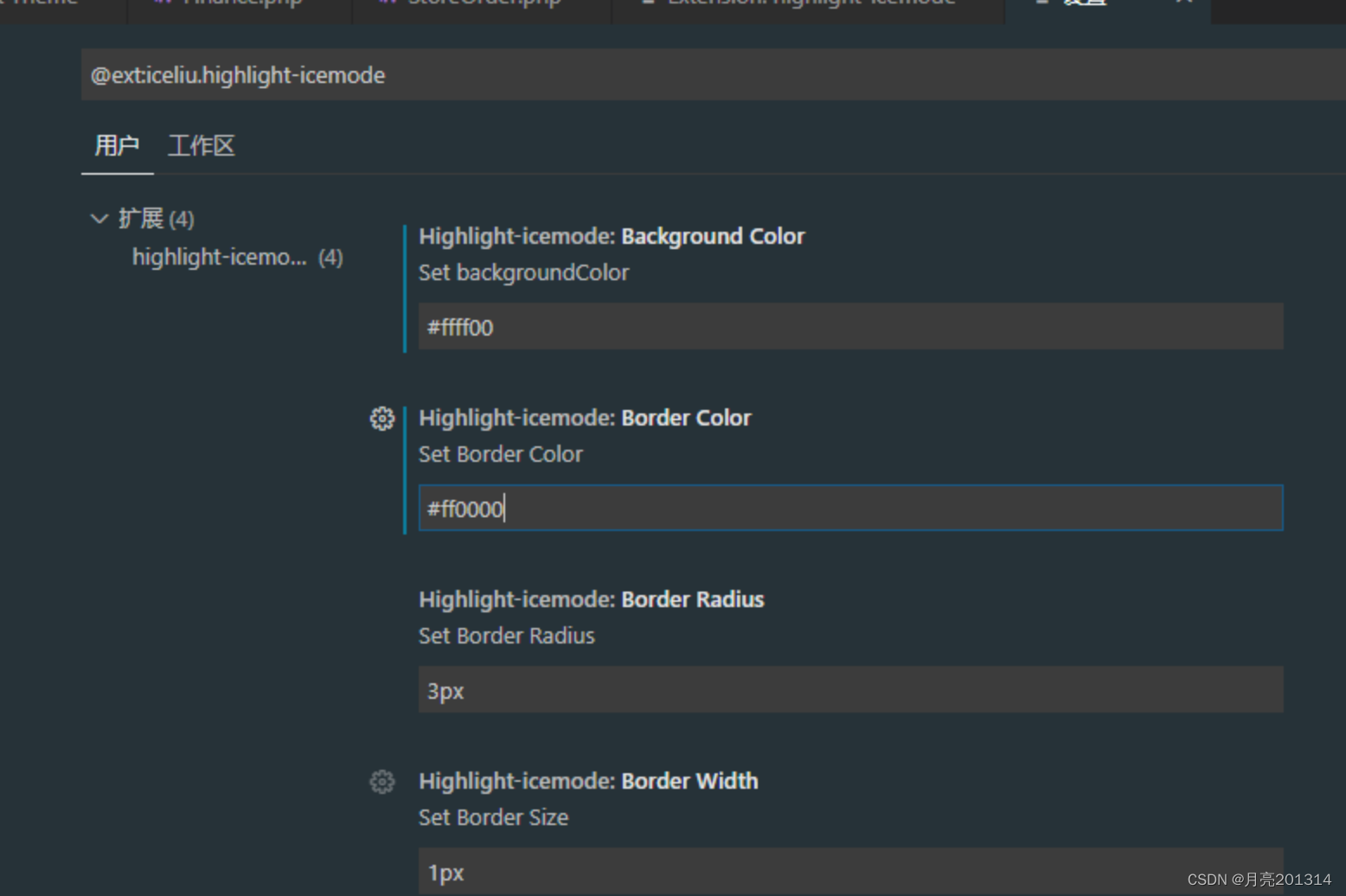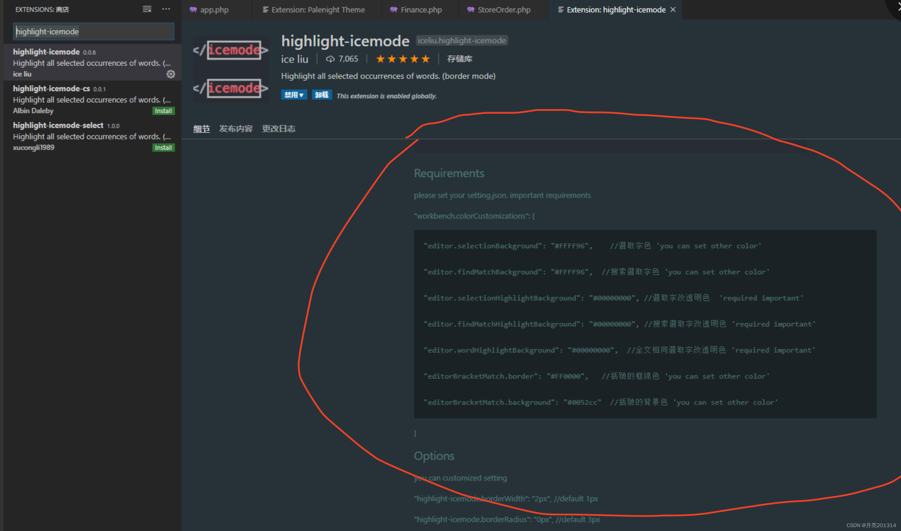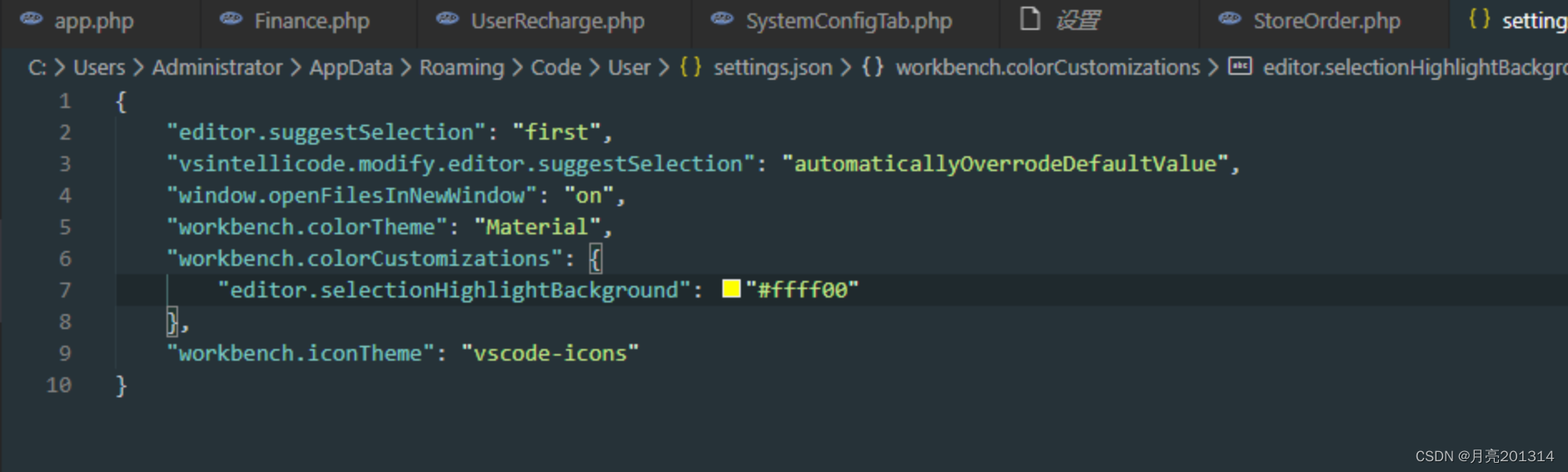 上面我们选择一个变量名的时候,其他同名的变量名的高亮不是很明显,我们想设置明显一点,比如黄色,怎么设置?如下