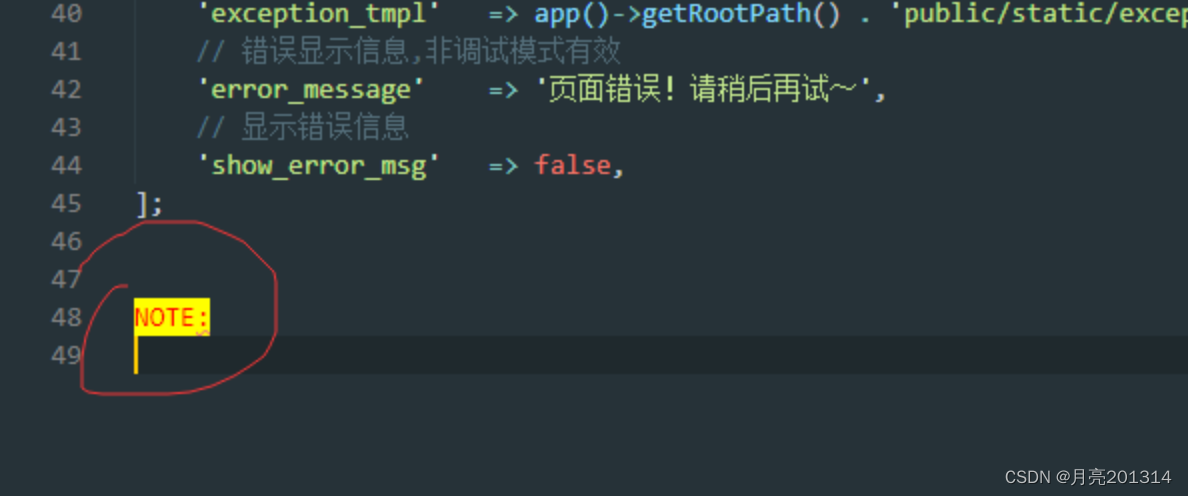 1表示我们设置高亮的字符串,2是设置的字体颜色,3设置的是背景颜色,然后我们看看我们代码中的NOTE:,看看有没有高亮,如下