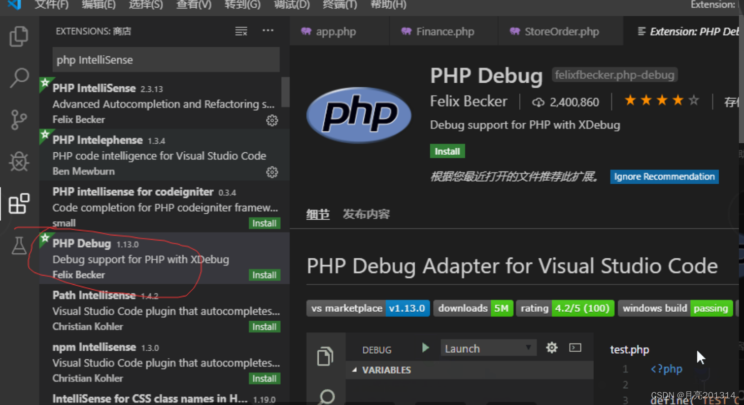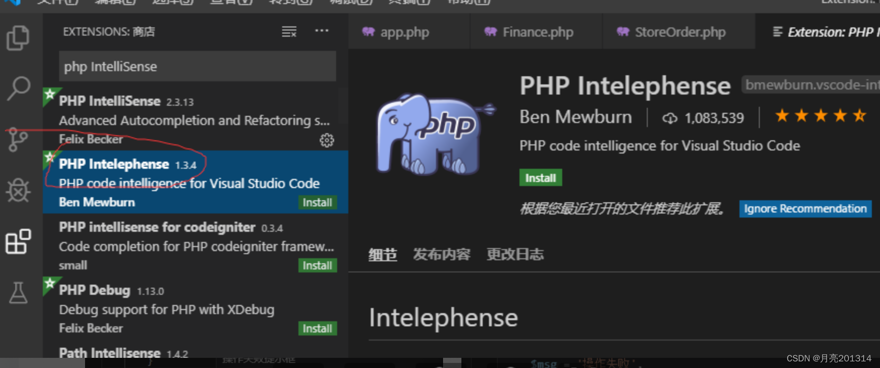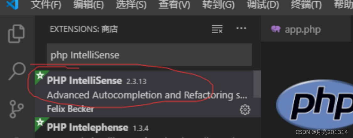 在里面搜索插件来安装,输入我们要安装的插件,php IntelliSense,如下