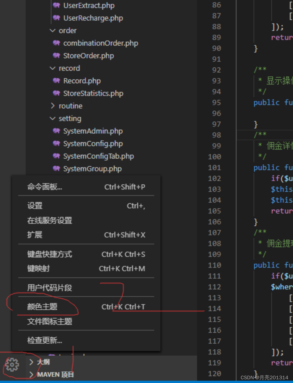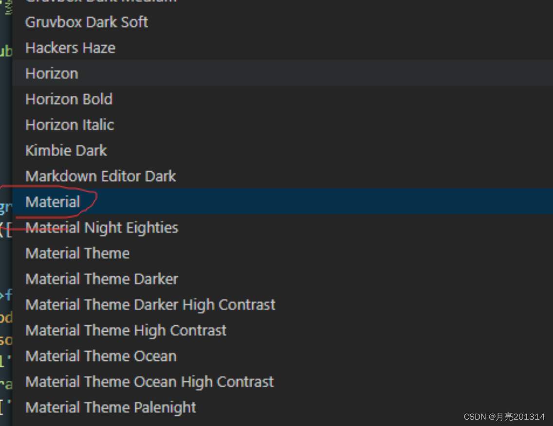 编辑器我们想换个主题,如下点击1再点击2,如下