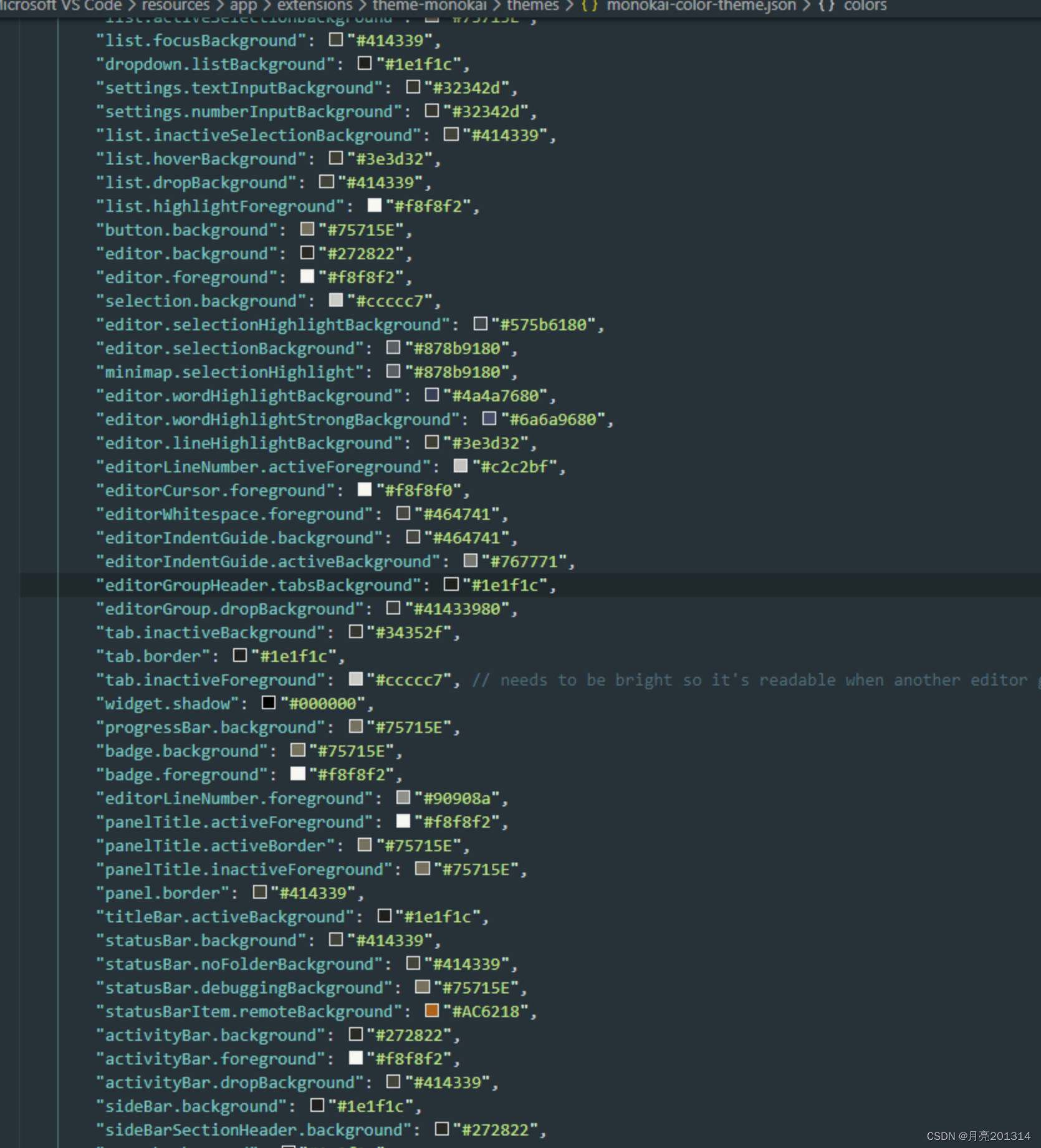 我们就找上面那个“theme-monokai”,进去看看它的配置文件,如下