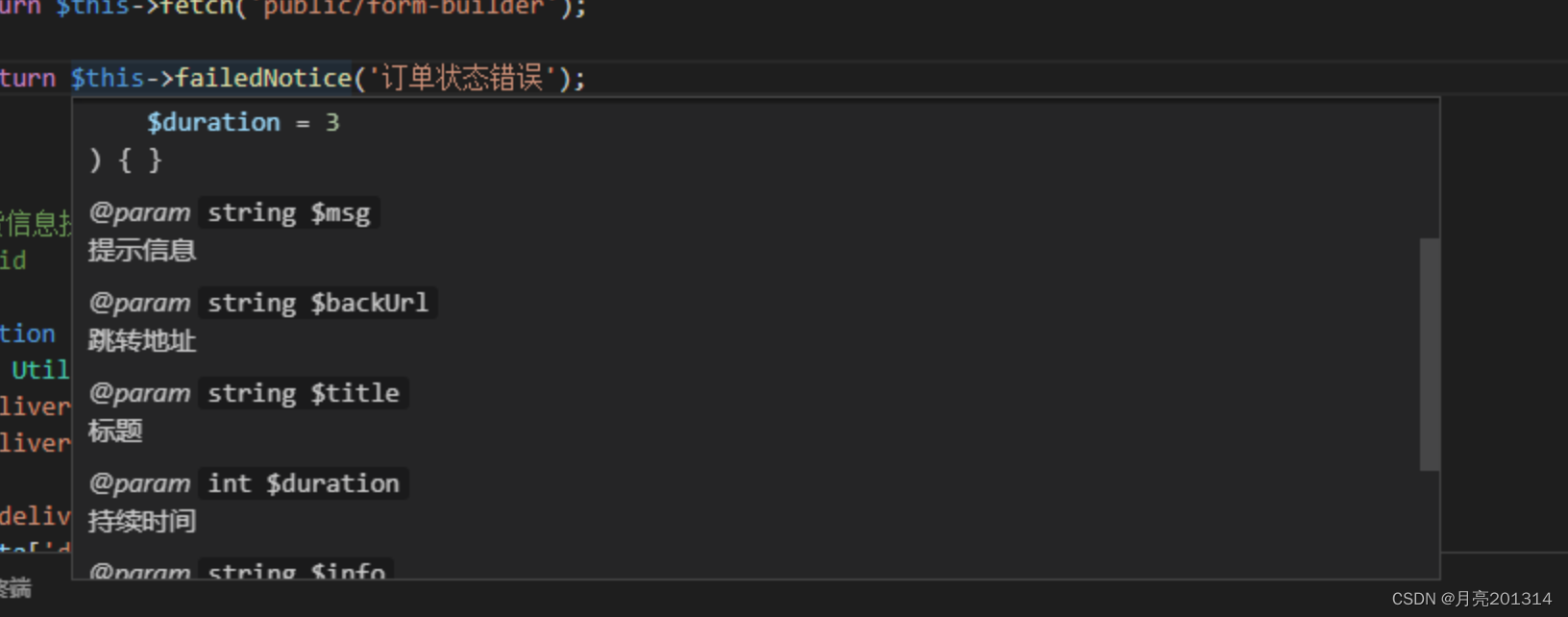 把鼠标放到我们的函数上面,它会出现提示,显示函数的注释啥的,如上。