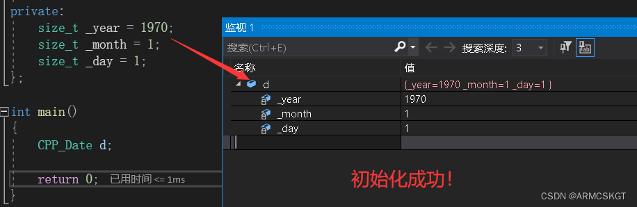 class CPP_Date //日期对象 { public:private:size_t _year = 1970; //声明阶段赋予缺省值size_t _month = 1;size_t _day = 1;//注意:类成员变量定义在构造函数的初始化列表,并不是在声明阶段! };