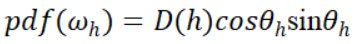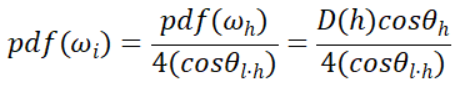 其中θh为法线与halfDir的夹角。注意这里是生成HalfDir样本所用的概率密度函数,而生成ωi样本的概率密度函数为:
