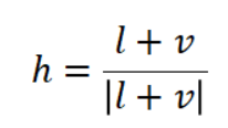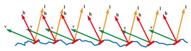 一个宏观平面中必定存在一些微平面法线m正好位于l和v之间的中间位置。l和v之间的矢量称为半矢量或半角矢量,这个向量最初来源于Phong模型用于加速计算 一般将其表示为h。h定义为: