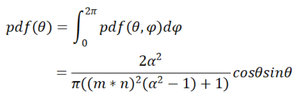 这个过程并不会在本文中再运算一遍,因为网络上关于运算过程的解析已经很多了,比如tomeng大神的这篇文章,我这里直接贴出运算结果,首先对于GGX的法线分布,目标概率分布为(sinθ是由于球面积分的缘故):