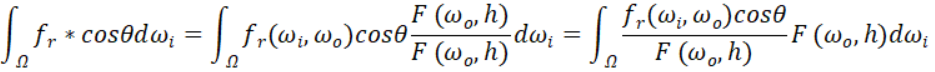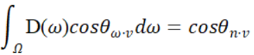 这个公式我在当时总结了一句话: 每个微平面在ω方向投影的和是宏观平面在ω方向上的投影,这里的ω可以是任意方向。本质上无非就是一个表面的微表面法线处在表面法线所在的半球中,这些微表面面积在表面的投影的和一定等于表面面积,所以这里为1是非常合理的(亏我还费劲证明了好半天,有点低能了)。同样的原理有如下关系: