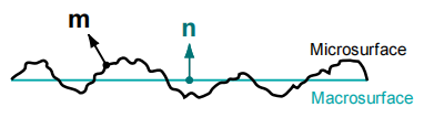 其中,α为物体表面的粗糙度,n为物体表面的宏观法线方向,m为物体表面的微观法线方向。