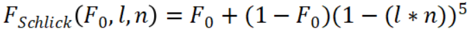 其中F0即为介质的菲涅尔系数。这个方程广泛地用于计算机图形学中,并且在BRDF中将微表面法线h代替了上式中的宏观法线n。