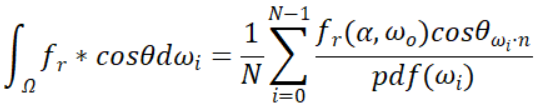 该方程为实际上在预计算时最终应用的方程式。同时,在实际应用中,往往使用生成ωh样本的概率密度函数来获得样本,这是由于该概率密度函数实现了球面积分上的归一化而选取的: