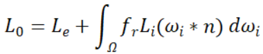 在描述一个表面(即一个点)的渲染方程,可以理解为漫反射和高光反射的加法。这个方程由Kajiya,James T.于1986年提出,以积分的方式描述了光在一个点上的流动方式: